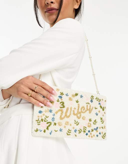 Never Fully Dressed Bridal embellished Wifey clutch bag with pearl Very well made.