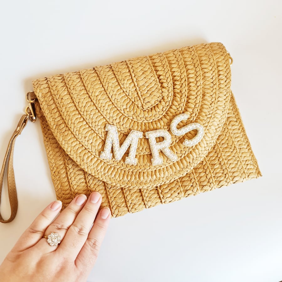 Mrs Custom Straw Clutch Shoulder Bag Hen Bride Bag Beach Bag Very well made.