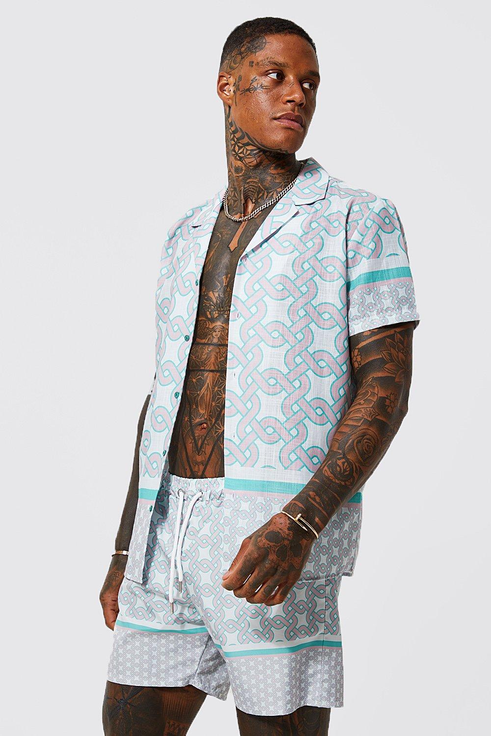 Ensemble de plage chemise et short de bain imprim g om trique Very well made.