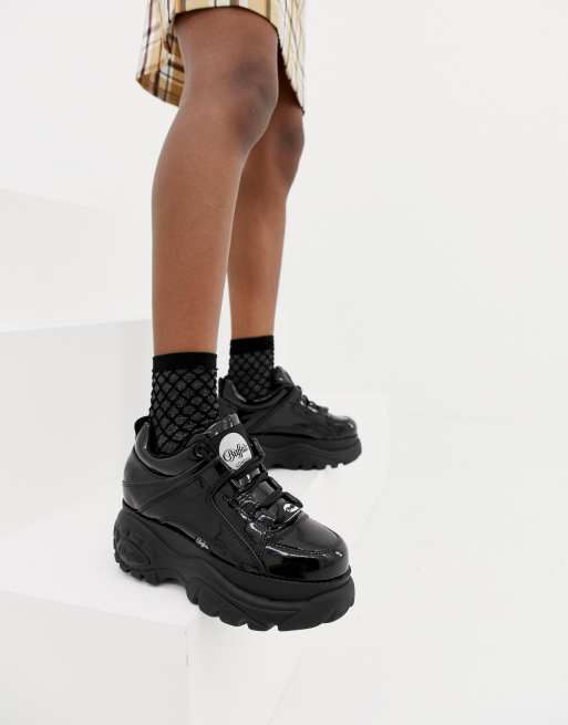 Buffalo London classic low top platform sneakers in black patent Very well made.