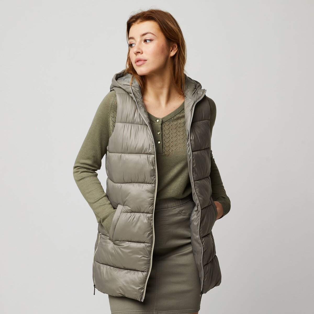INEXTENSO Doudoune sans manches vert kaki femme pas cher Auchan Very well made.