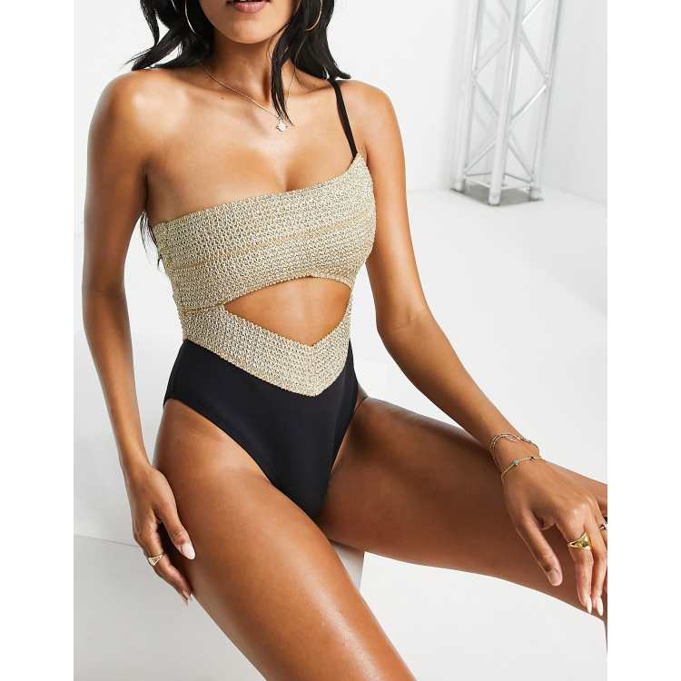 River Island one shoulder elastic cut out swimsuit in black ASOS Very well made.