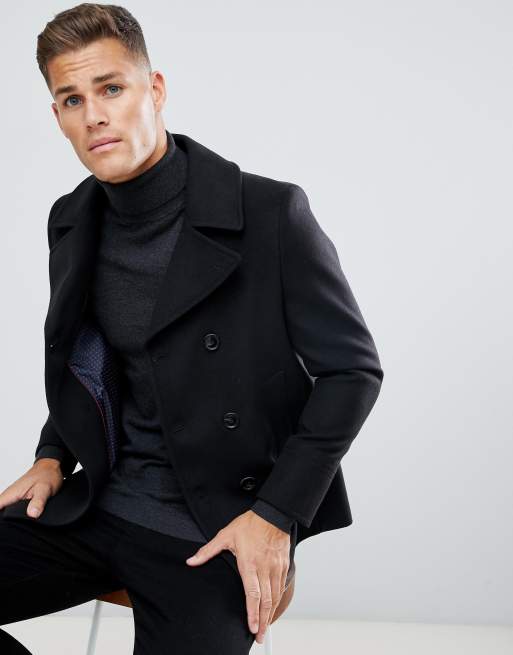 Men s Pea Coats Black Navy Pea Coats Burton UK Very well made.