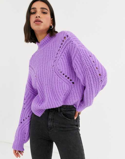 Bershka funnel neck pointelle sweater in purple ASOS Very well made.