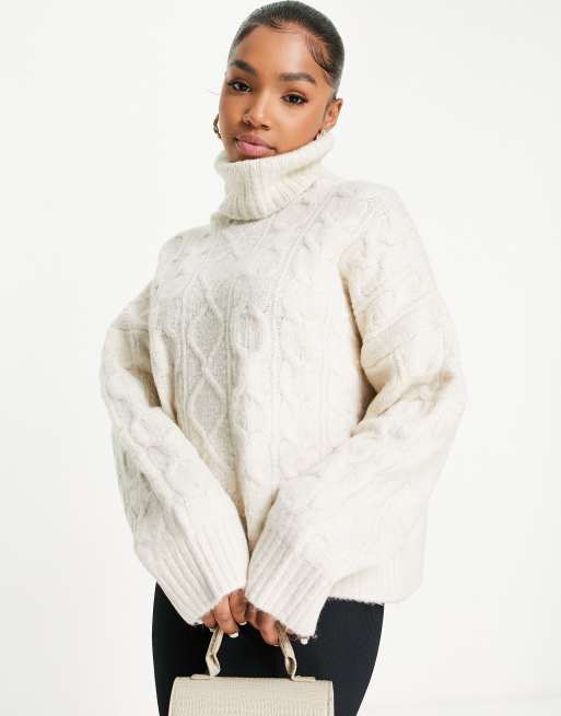 Stradivarius cable detail roll neck jumper in ecru Very well made.