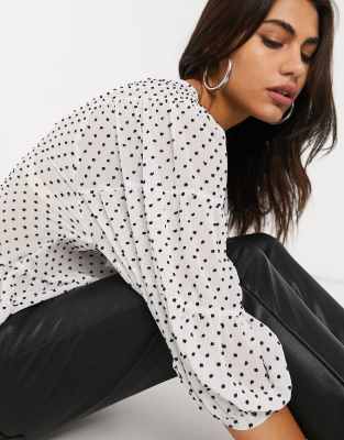 Chemisier blouse blanche pois noir S Zara Very well made.