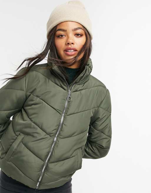 JDY chevron hooded padded coat in khaki Very well made.