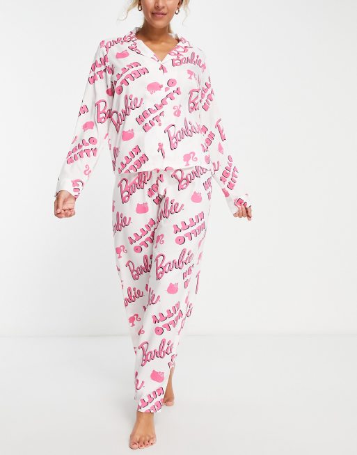 ASOS DESIGN Barbie x Hello Kitty Pyjama en modal avec chemise et pantalon Rose et blanc Very well made.
