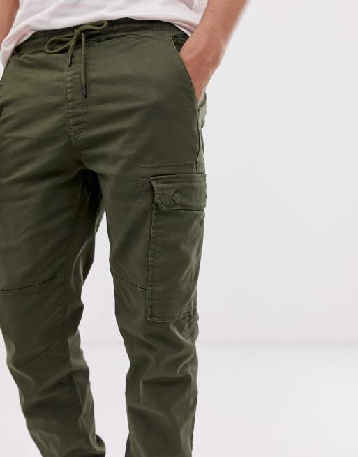 Pull Bear cargo trouser with adjustable cuff in khaki Very well made.