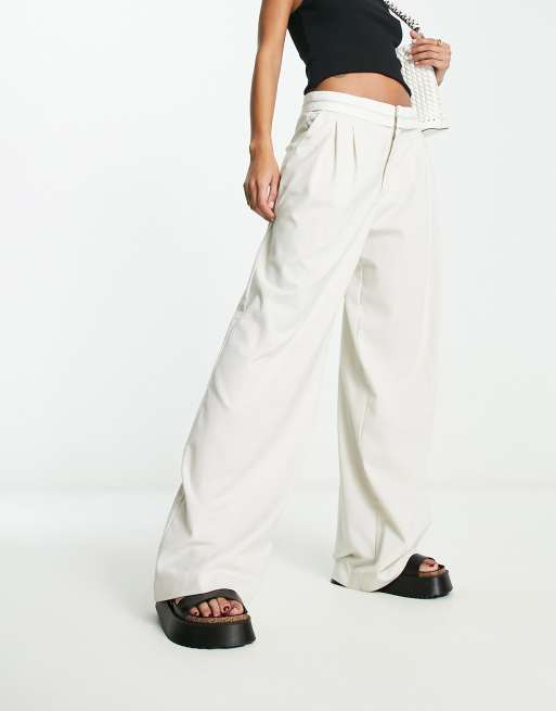 Stradivarius wide leg tailored pants with pleat detail in natural Very well made.