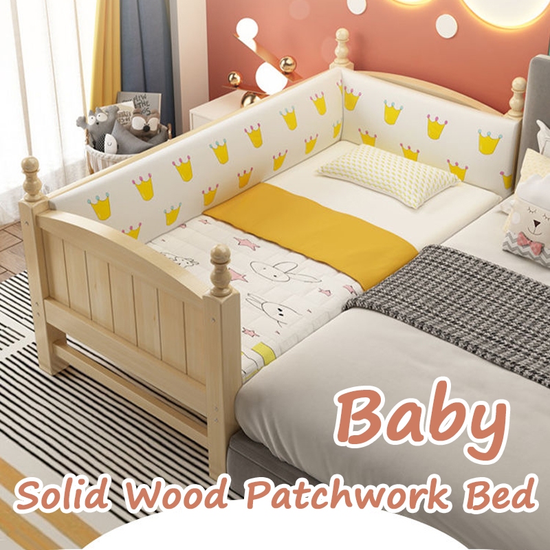Solid Wood Baby Bed Baby Cot Newborn Crib Splicing Big Baby Bed With Guardrail Children Bed Free Customized Height size Very well made.