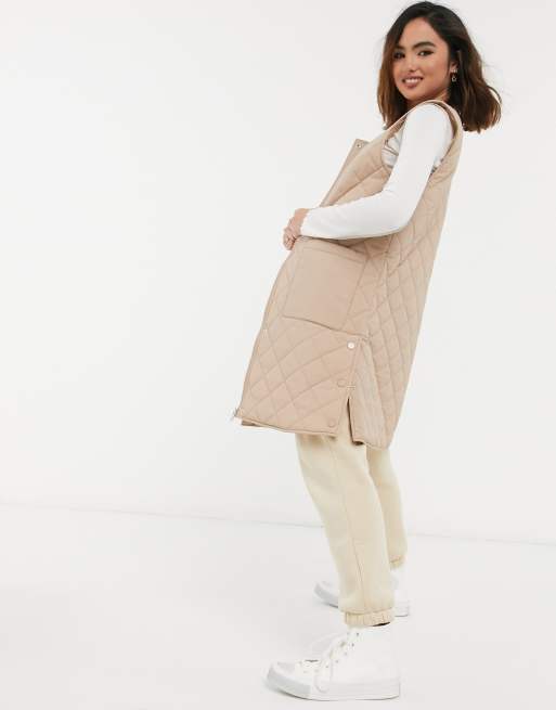 Pieces quilted longline vest in beige Very well made.