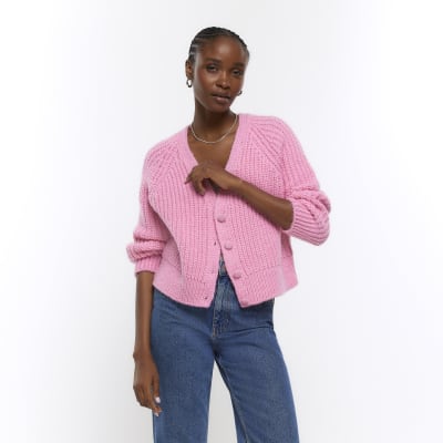 Pink chunky v neck cardigan River Island Very well made.