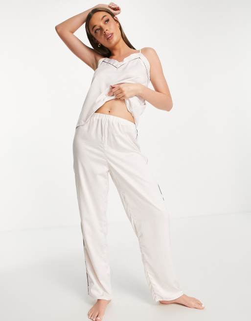 Loungeable Mix and Match Bas de pyjama en satin passepoils noirs Cr me Very well made.