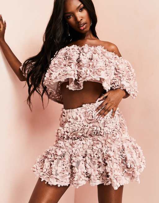 ASOS LUXE Mini jupe d ensemble en dentelle 3D Vison Very well made.