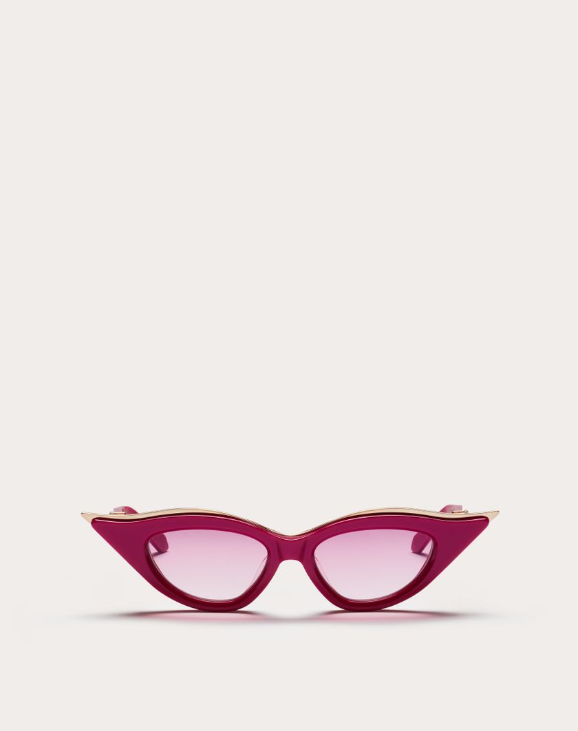 - Acetato giapponese con forma Cat-Eye scolpito di colore rosa con inserti in titanio color oro chiaro.