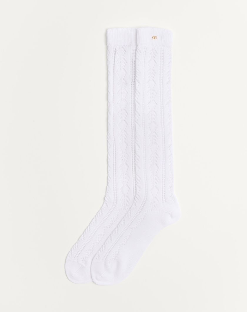 Valentino Handbags Calzini In Cotone Traforati Con Vlogo per Uomo in Burro | Valentino IT