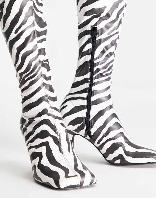ASOS DESIGN Kindred heeled square toe over the knee boots in zebra Very well made.