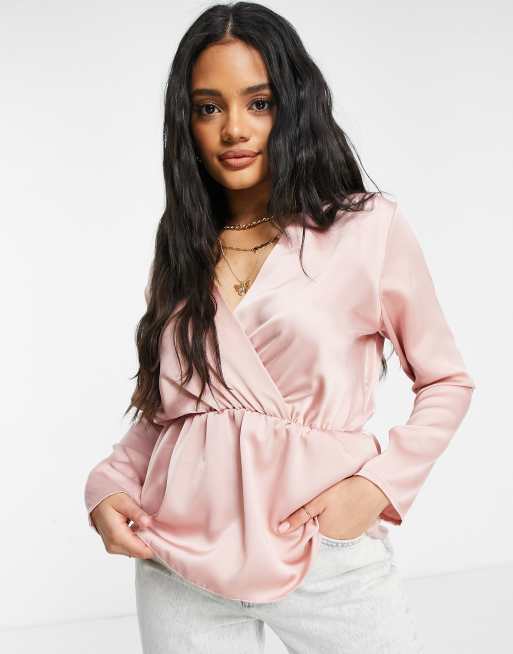 ASOS DESIGN textured wrap short sleeve blouse with pleated peplum hem in light blue Very well made.