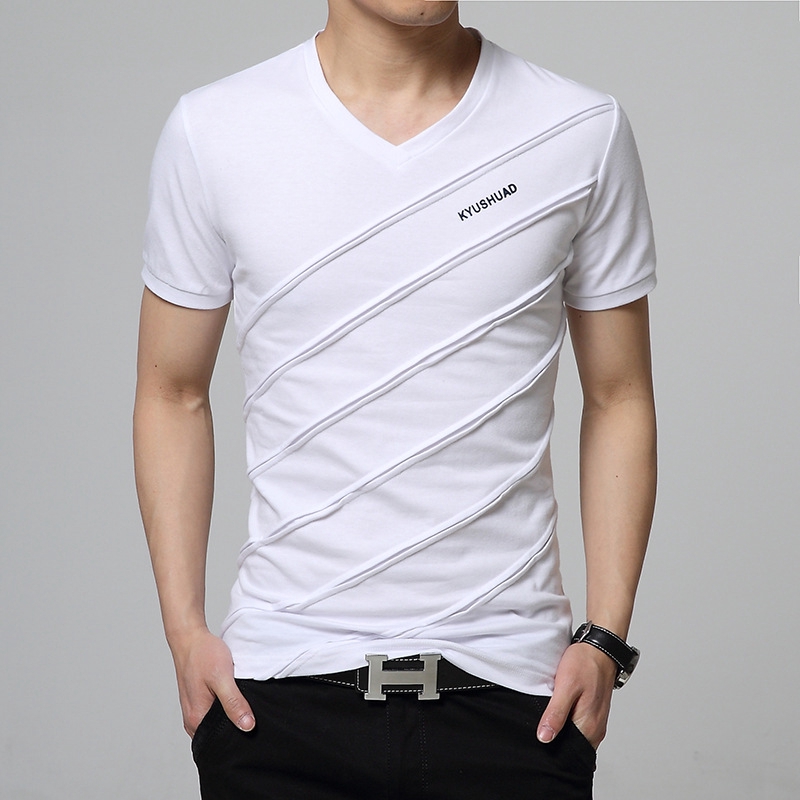 Mens V Neck T Shirt Short Sleeve Slim Fit Casual Plain Tee Top Very well made.