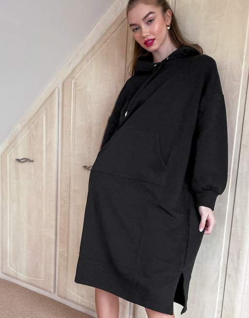 Monki Zandra Robe sweat capuche en coton Noir BLACK Very well made.