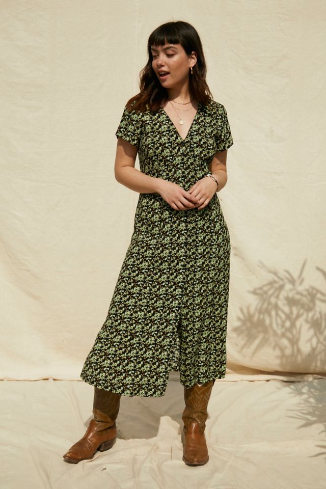 UO Floral Black Floral Midi Shirt Dress Very well made.