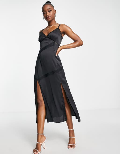 ASOS DESIGN lace insert satin midi slip dress in black ASOS Very well made.