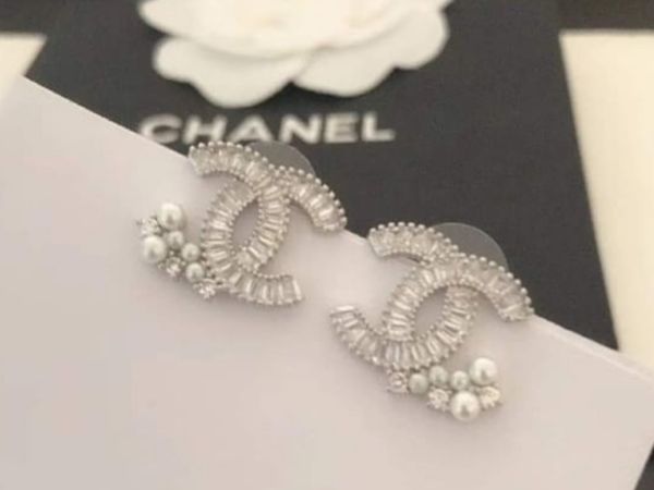 Chanel Crystal or Pearl CC Logo Stud Earrings for sale in Co Very well made.