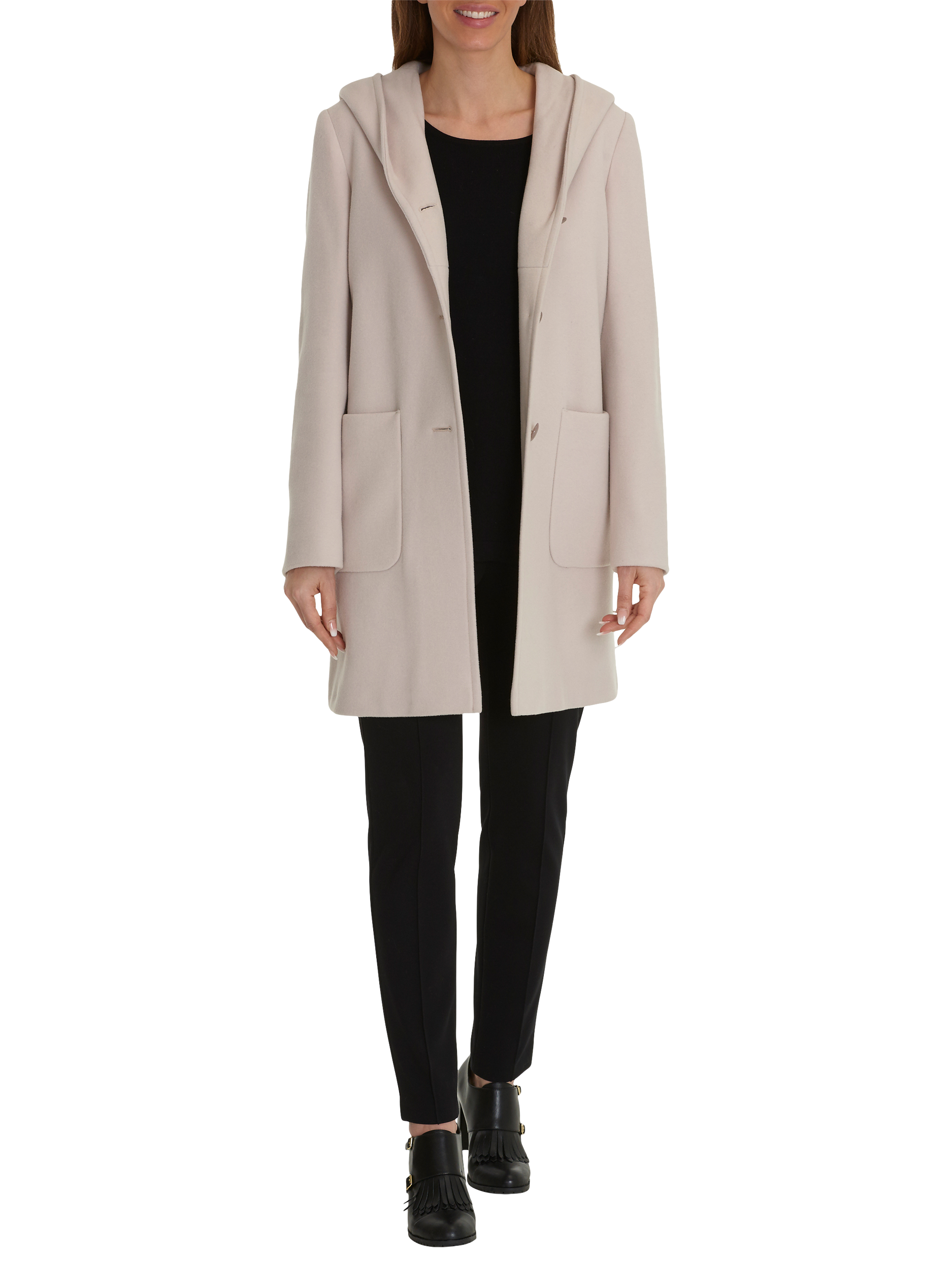 Betty Barclay Hooded Wool Coat Powder Beige Very well made.